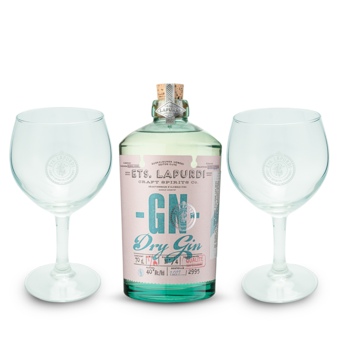 Pack London Dry Gin GN 40° ETS. LAPURDI 70cl + 2 verres à Gin 62cl
